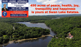 Swan Lake Estates 80 miles from NYC. 467 Acres of which 350 acres is the entire historic Swan Lake subdivided into 21 separate lots. $2,650,000
